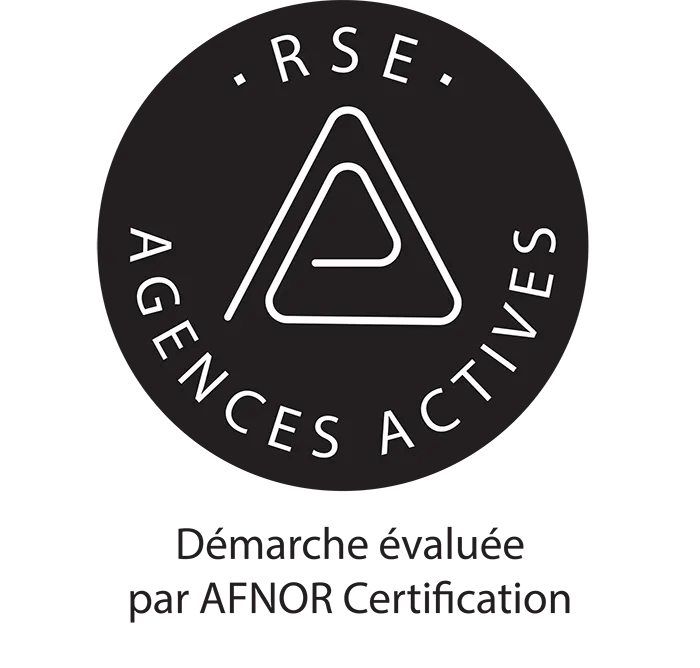 Depuis 2025, nous sommes labellisés RSE “Agences Actives” de premier niveau. L’objectif est de mesurer nos actions en faveur de l’environnement et de la société de façon large, avec un barème adapté aux agences de communication. Tous les 2 ans, nous devons renouveler la certification et montrer nos progrès : un véritable engagement sur la durée.